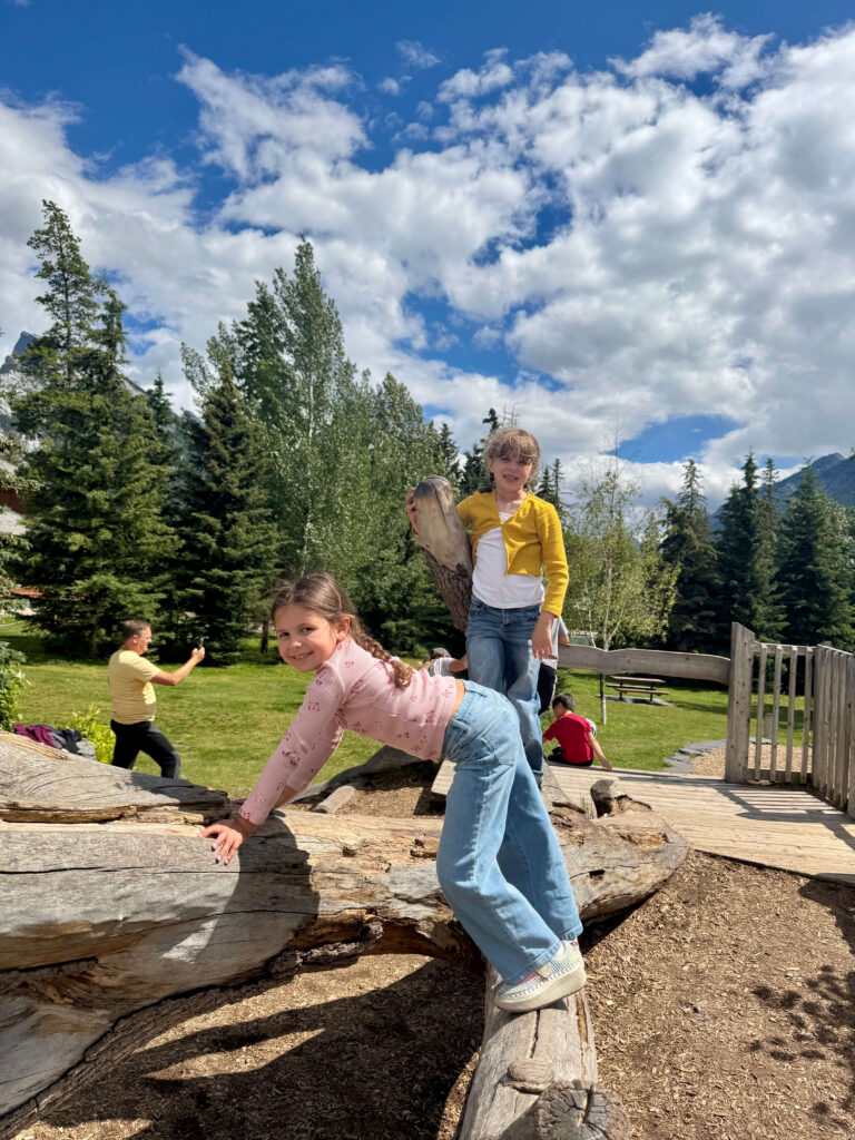 When you need a break from hiking or sightseeing, the playground in Central Park along the Bow River is a great stop. Itโs close to downtown Banff and gives kids a chance to run around and burn off some energy while parents enjoy the mountain views.